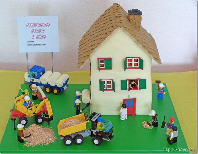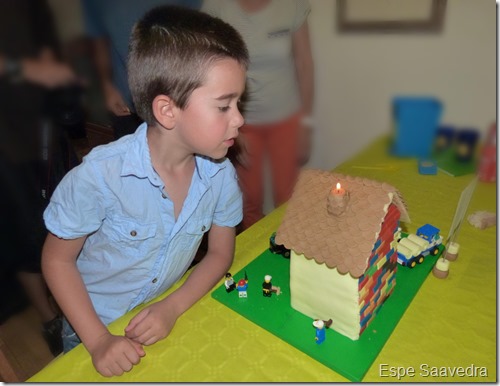 Y por semejanza, pues le hice la tarta en forma de casa, y como si fuera de Lego.