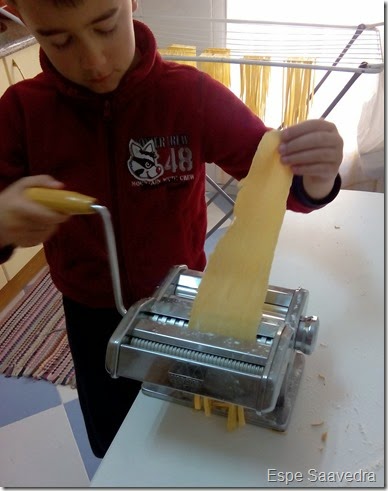 Hacer pasta fresca no es difícil. Hay que tener una maquina para aplanarla, porque a rodillo es mas complicado. La preparé con el peque, y le encantó, pasamos una mañana estupenda.